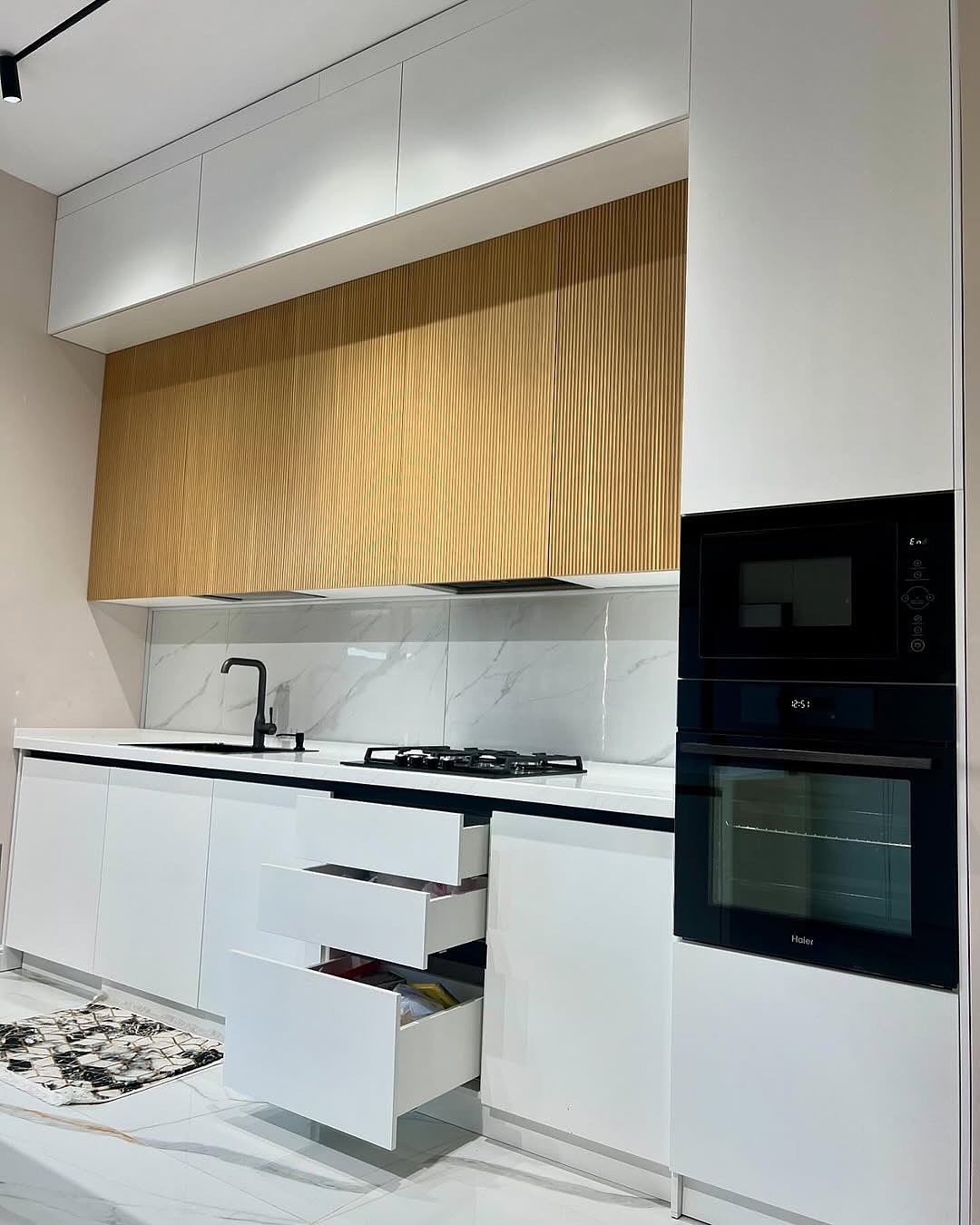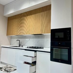 Bạn muốn một căn bếp phá cách, thoát khỏi những thiết kế phẳng thông thường? Tủ bếp Melamine Flex là câu trả lời. Với sự kết hợp sáng tạo giữa các bề mặt phẳng hiện đại và điểm nhấn cánh nan gỗ tinh xảo, Tủ bếp Melamine Flex mang đến nhịp điệu thị giác mới lạ, biến không gian nấu nướng thành một tác phẩm nghệ thuật cá tính.