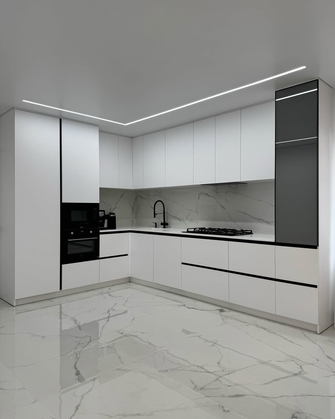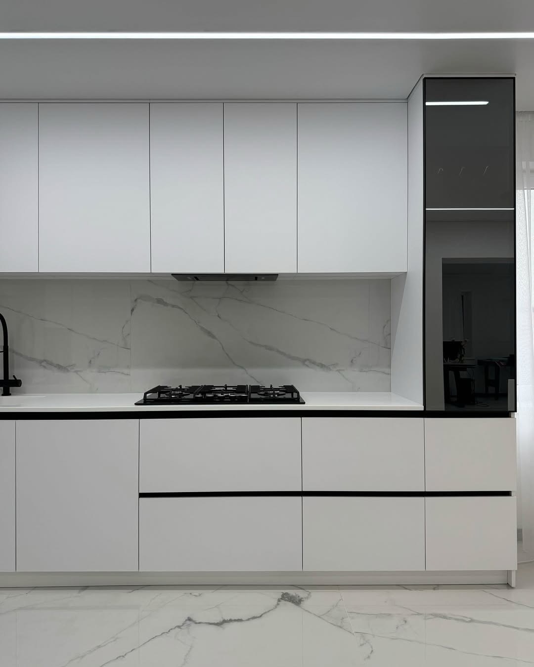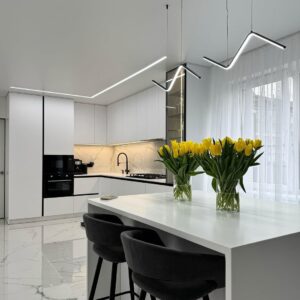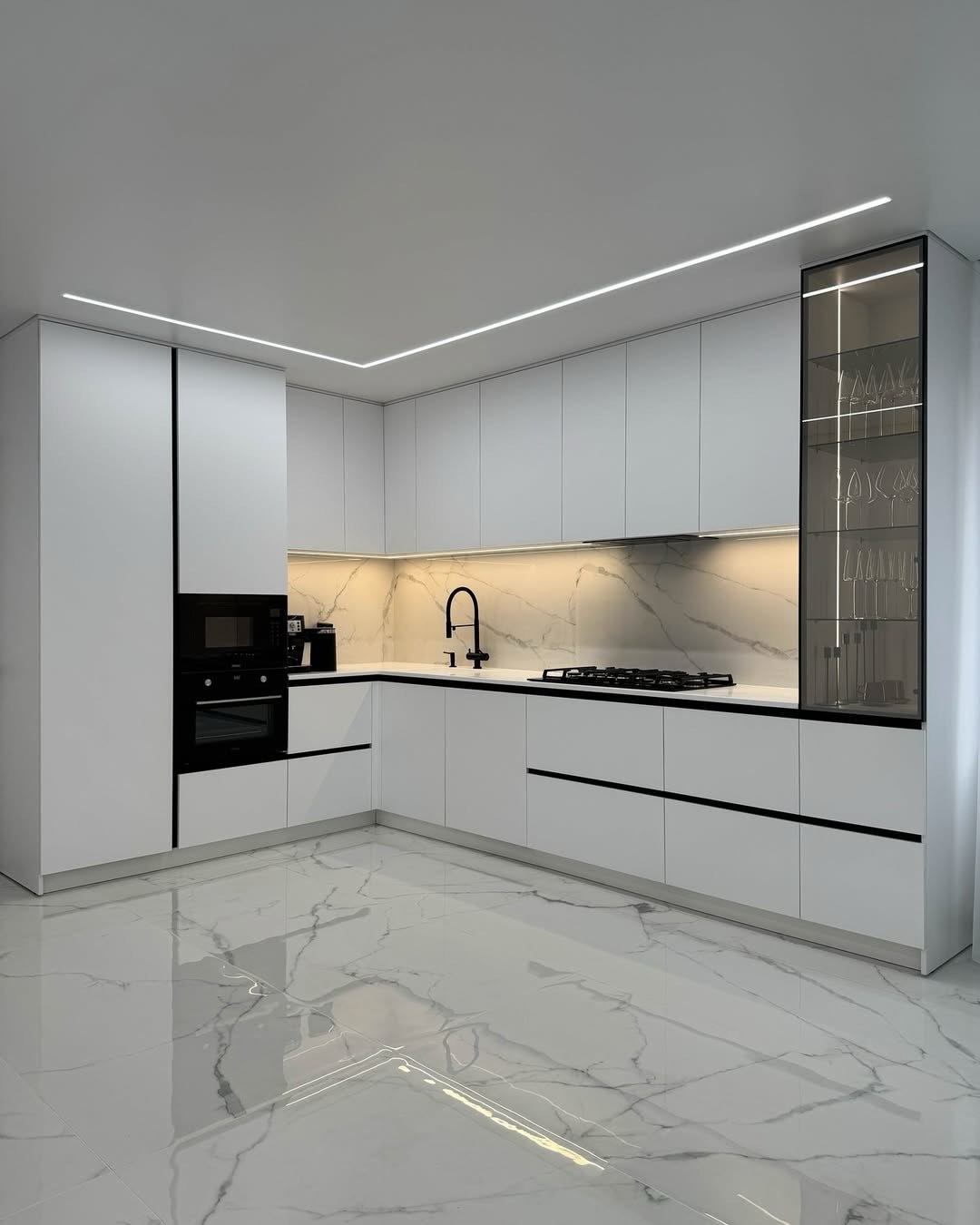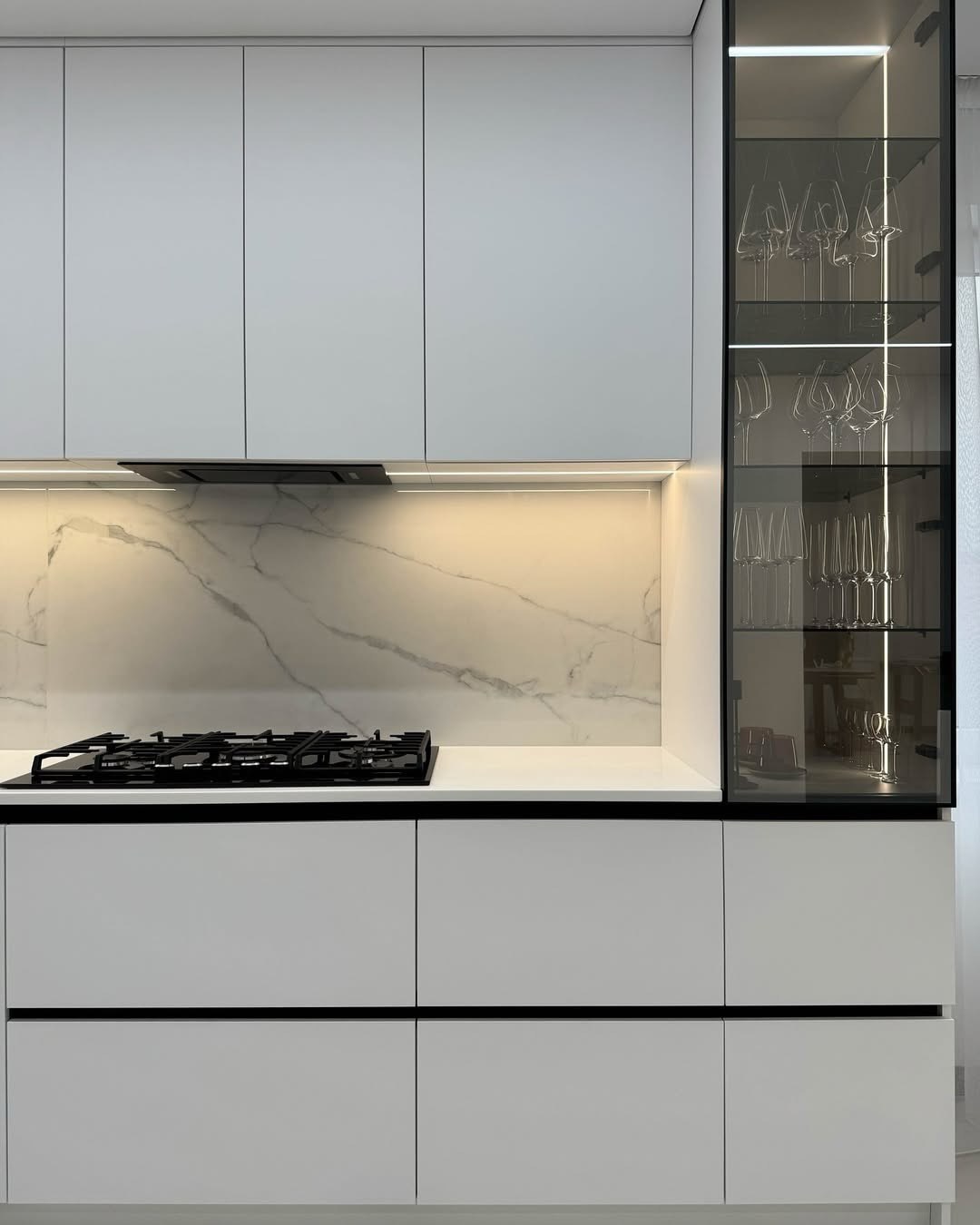 3. Tích hợp tiện ích: Dễ dàng bố trí thêm hệ tủ kính sang trọng, tủ kho chứa thực phẩm và khoang lò nướng, vi sóng.